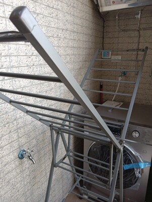 【AOTTO】翼型三層附輪折疊曬衣架(晾衣架 曬衣架 衣架)