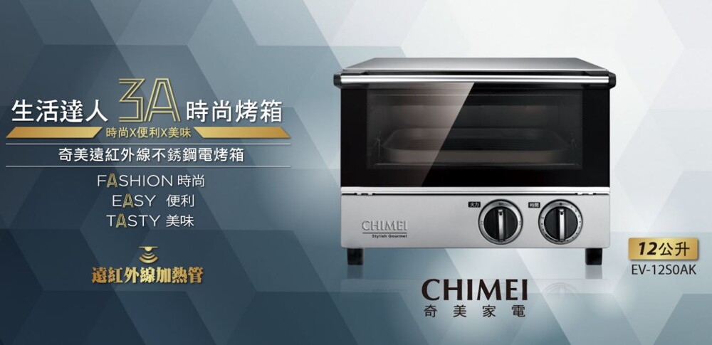 CHIMEI奇美12L遠紅外線不鏽鋼電烤箱 EV-12S0AK