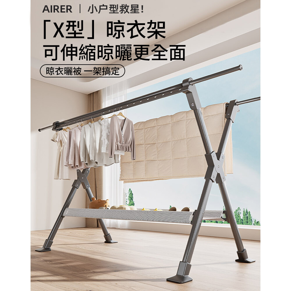 【AOTTO】升級加長X型伸縮折疊曬衣架(晾衣架)