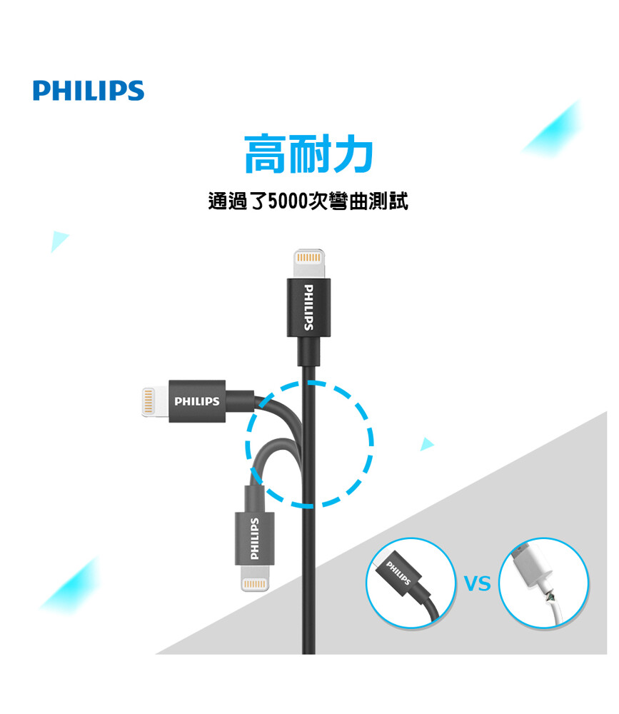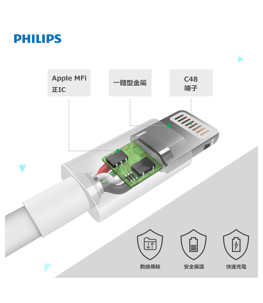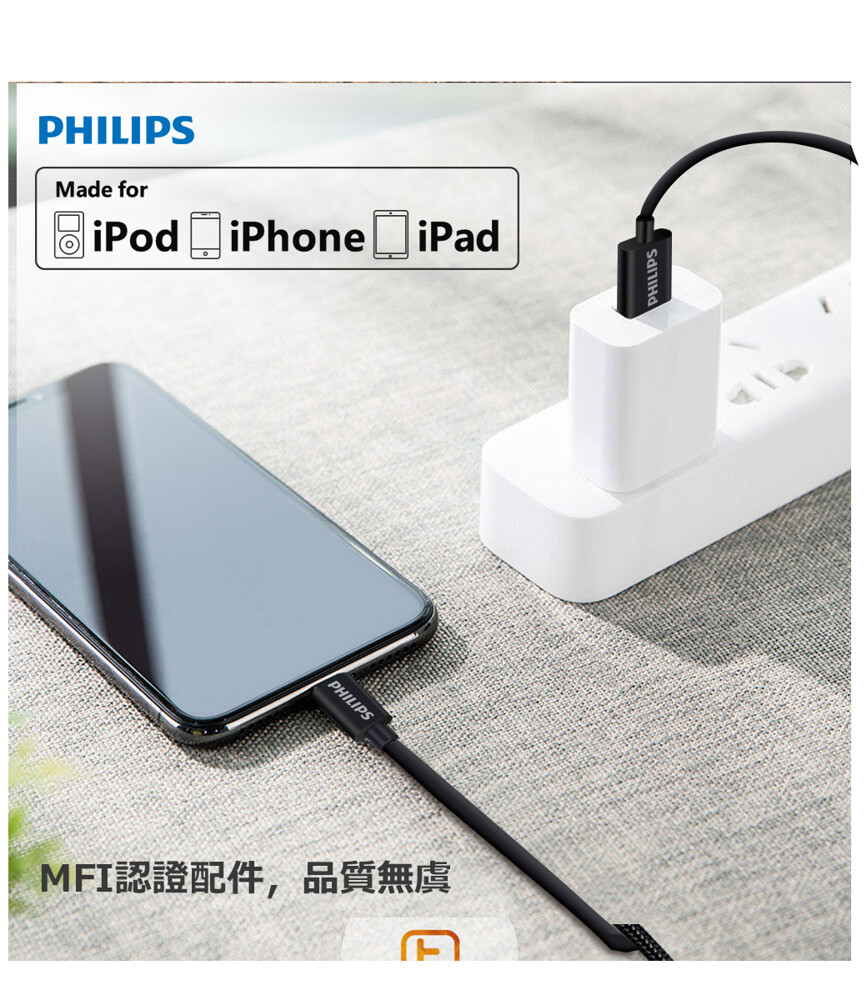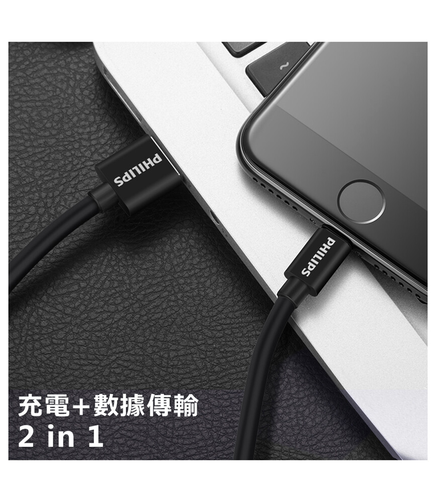 【PHILIPS】1m耐拉扯lightning MFI傳輸充電線 DLC2404