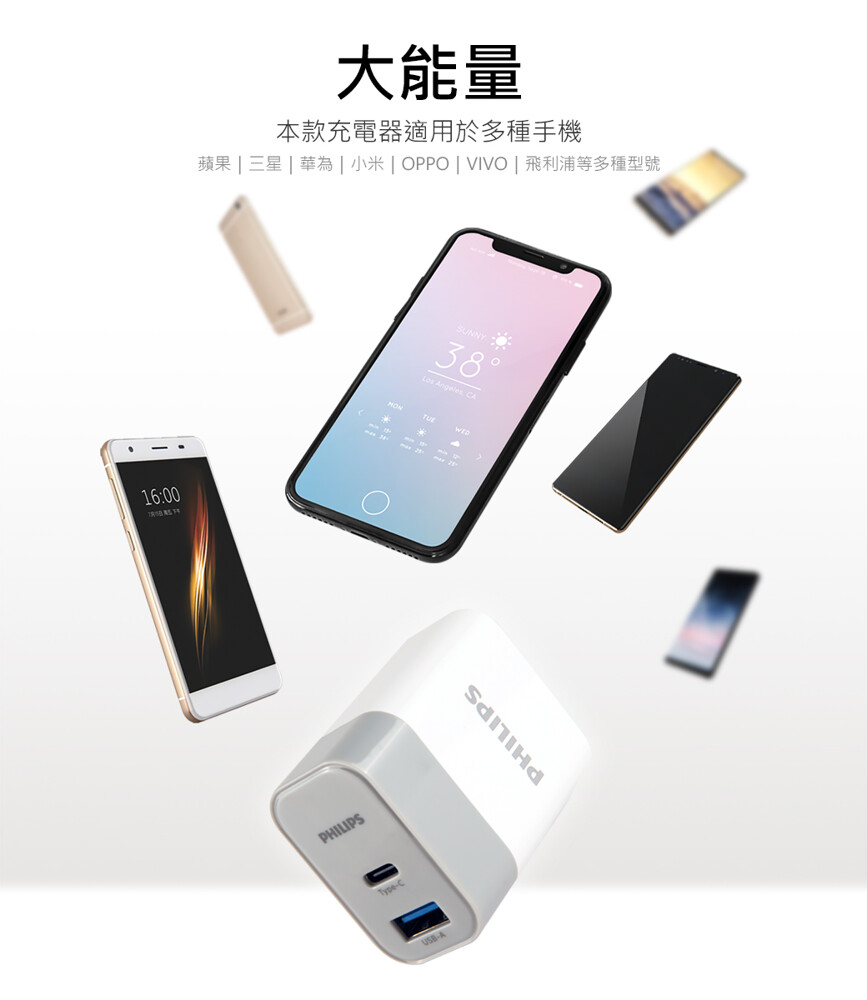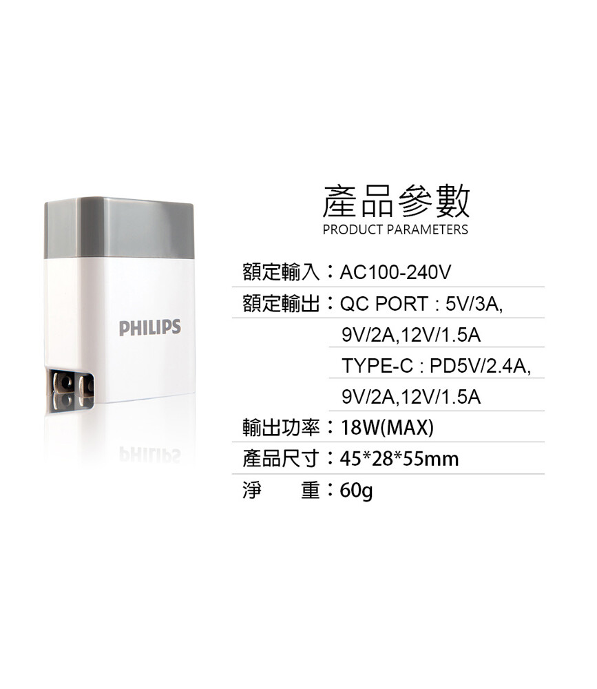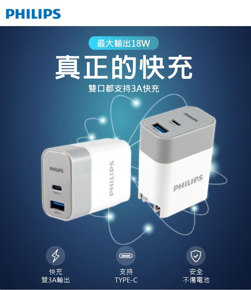 【PHILIPS 飛利浦】 PD+QC Type-C USB 18W充電器 DLP4320C