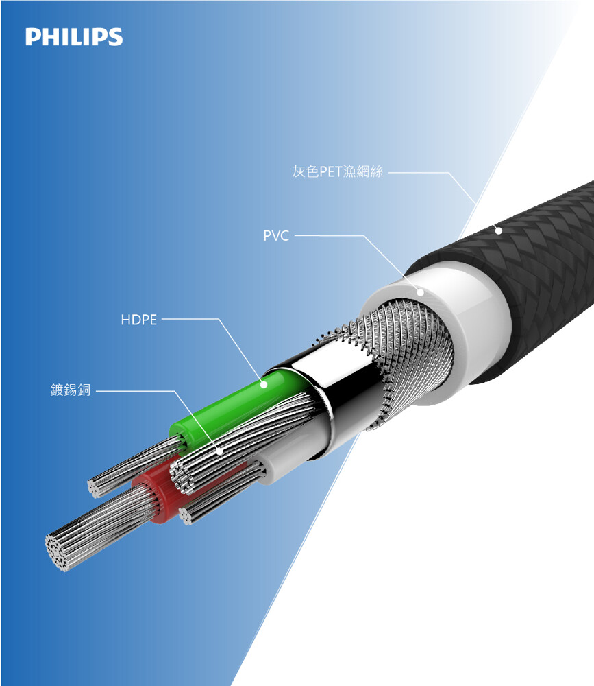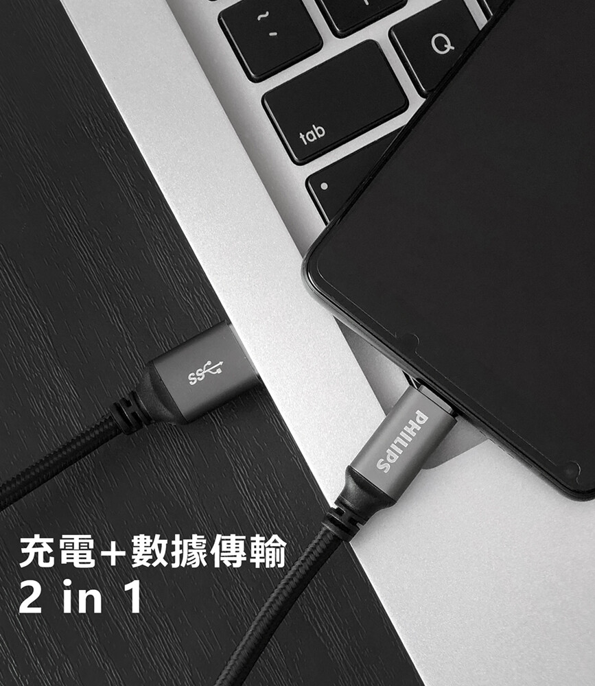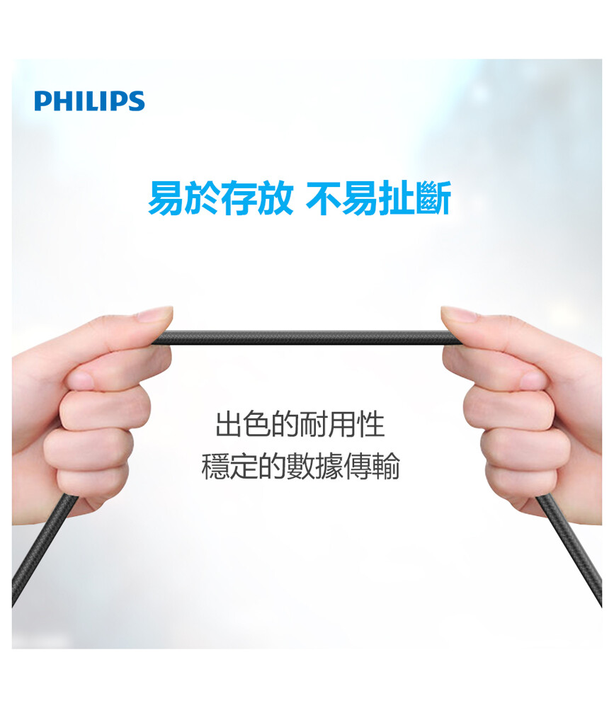 【PHILIPS 飛利浦】1m Type C尼龍編織傳輸充電線 DLC4530AB