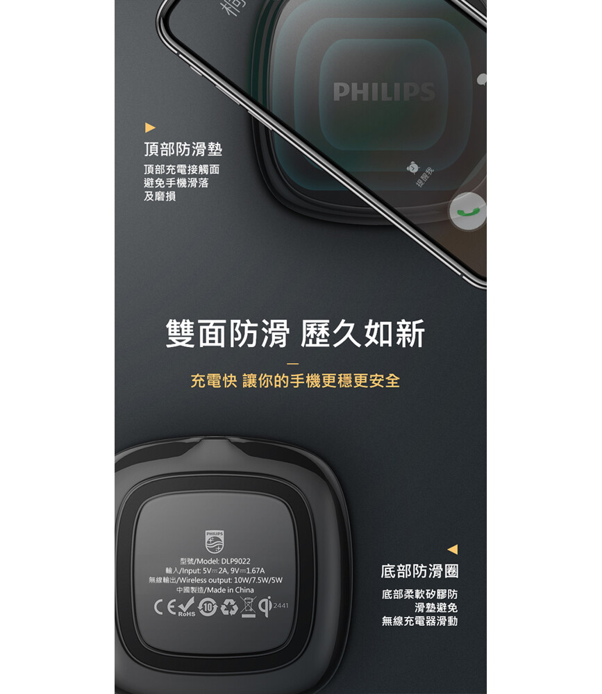 【PHILIPS 飛利浦】Qi認證無線充電板充電器DLP9062