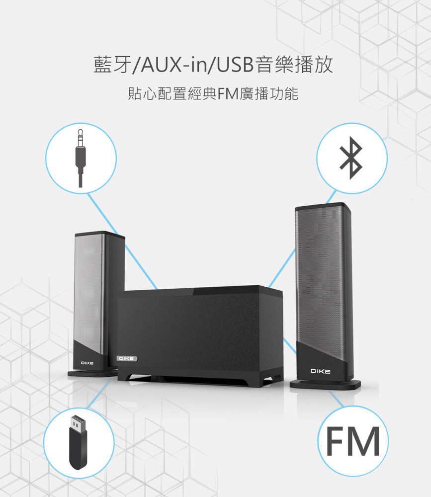 支援藍牙/AUX-in/隨身碟音樂播放,FM廣播功能重溫經典時光