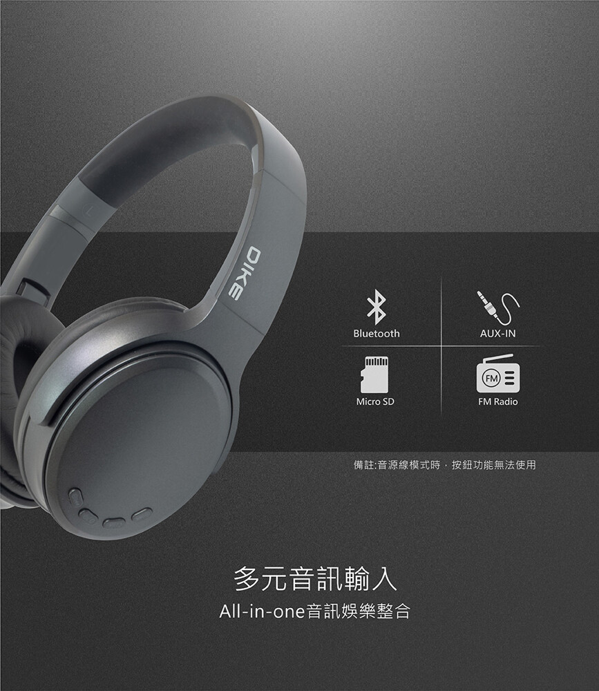 DIKE 立體重低音頭戴式藍牙耳機麥克風 DEB600GY