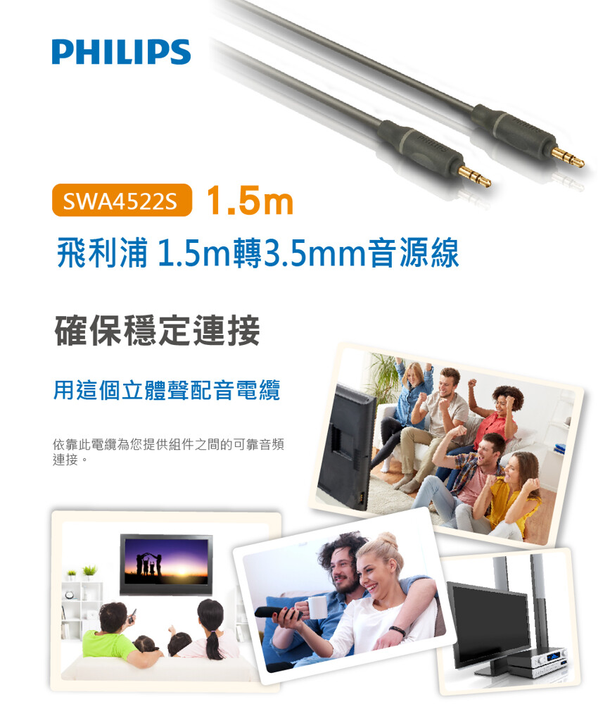【PHILIPS 飛利浦】 1.5m 3.5mm轉3.5mm音源線 SWA4522S/10
