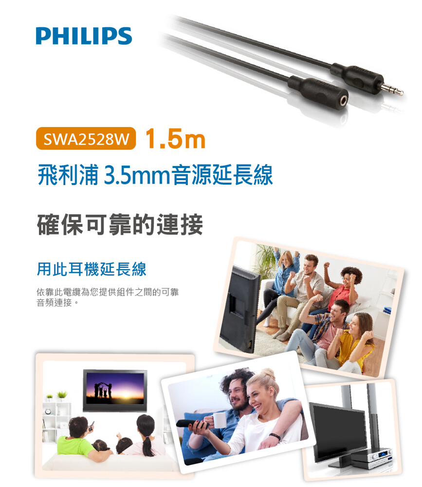 【PHILIPS 飛利浦】 1.5M 3.5mm音源延長線 SWA2528W/10