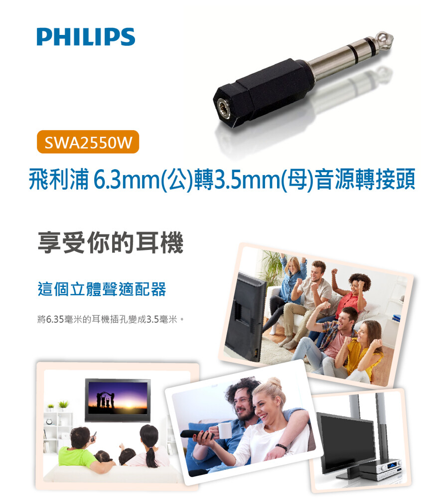 【PHILIPS 飛利浦】 6.3mm(公)轉3.5mm(母)音源轉接頭SWA2550W/10