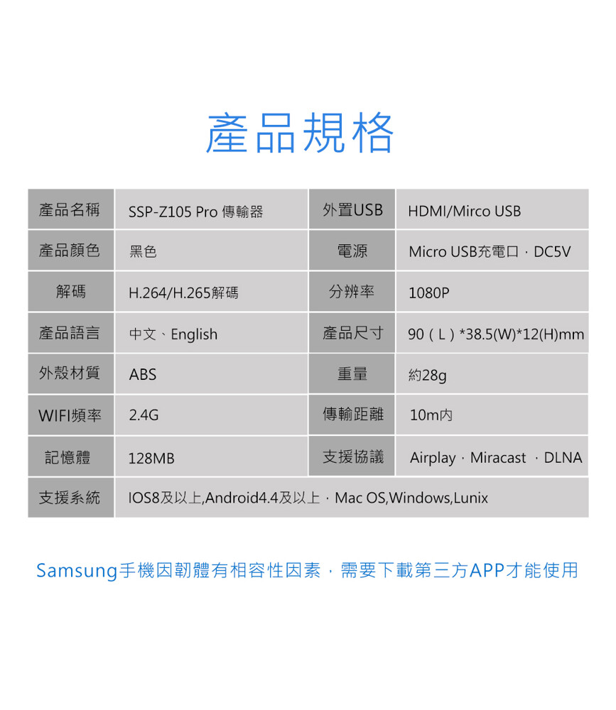 ■ 支援傳輸模式:AirPlay , Miracast , DLNA
