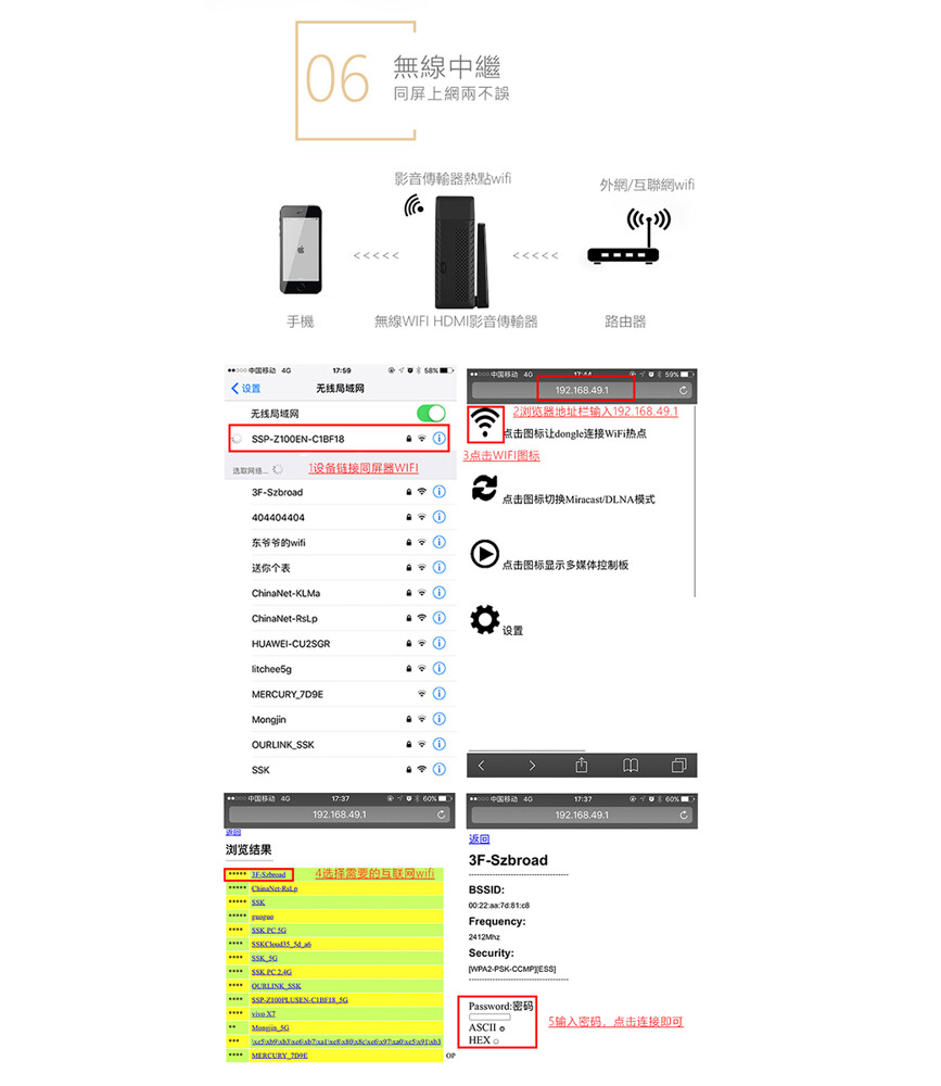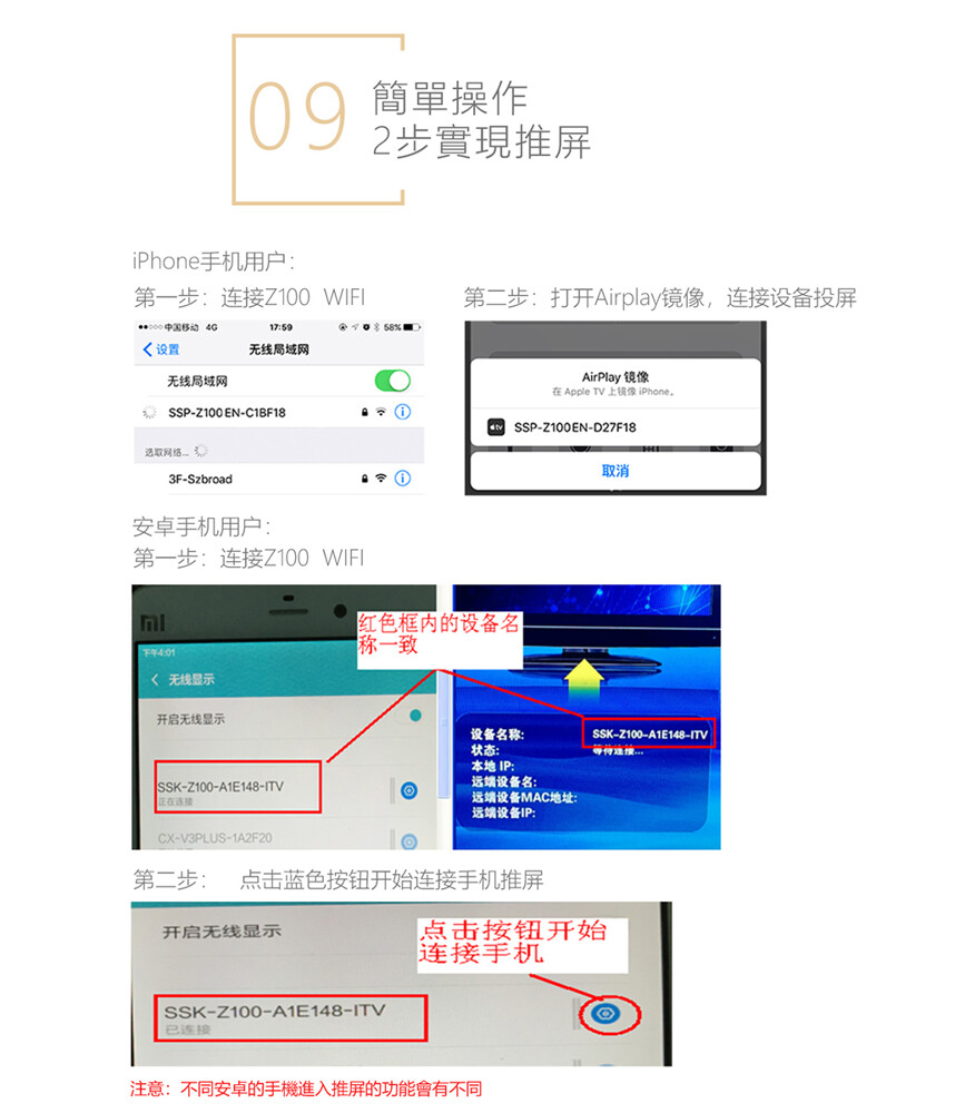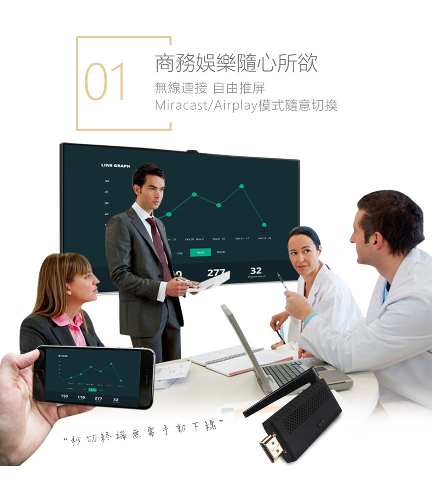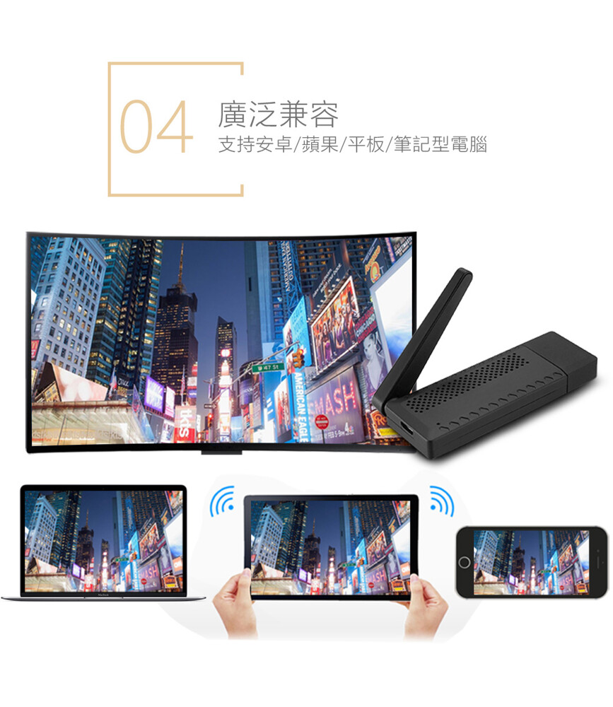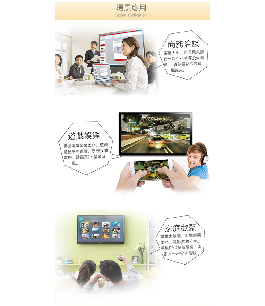 • 瞬間無線同屏兼容安卓、蘋果、筆記型電腦投屏到電視及投影器上