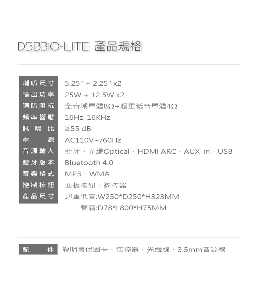 DIKE 單件式重低音環繞家庭劇院 DSB310-LITE