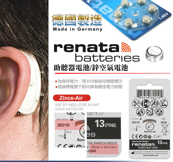 德國製造 RENATA PR48/S13/ZA13/A13/13 空氣助聽 器電池(1卡6入)
