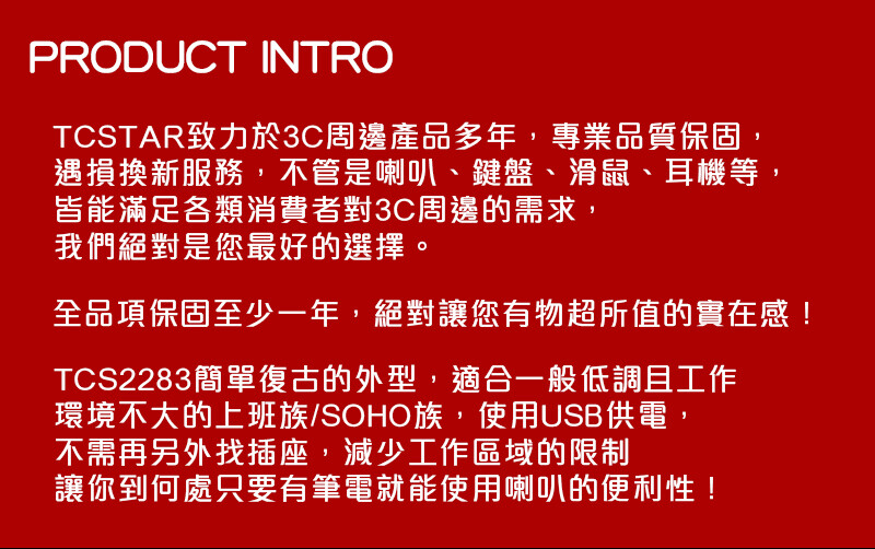 TCSTAR 二件式USB電腦多媒體喇叭 TCS2283