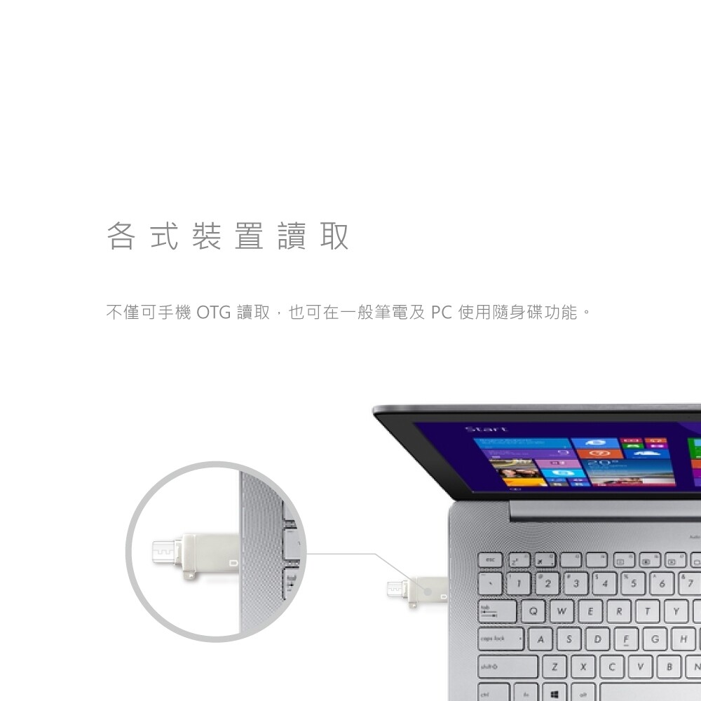 手機OTG功能 支援各式MicroUSB具OTG功能手機/平板裝置 隱藏式讀卡機 特殊結構,隱藏插卡槽於USB-A端,支援最大256GB 輕鬆傳輸備份 輕鬆連結手機資料與電腦資料 附贈便攜收納鍊 隨身攜帶不丟失