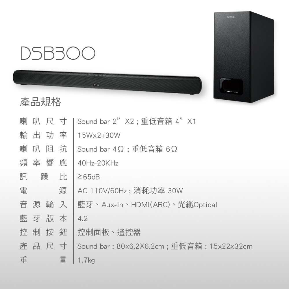 DIKE 2.1聲道藍牙家庭劇院環繞聲霸 DSB300