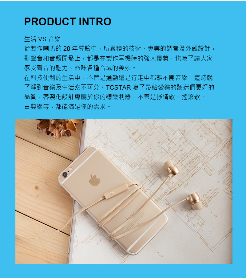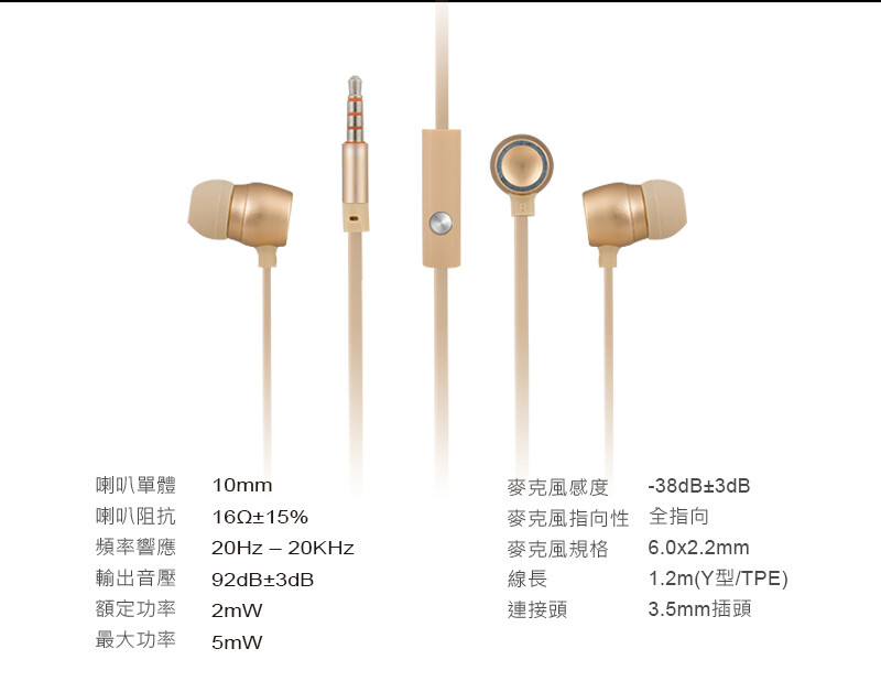 TCSTAR 有線入耳式耳機麥克風-香檳金 TCE5070CGV