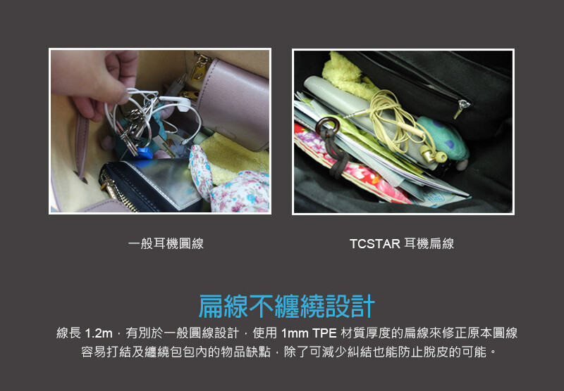 採用環保TPE線材,Y字型扁線設計,不易纏繞