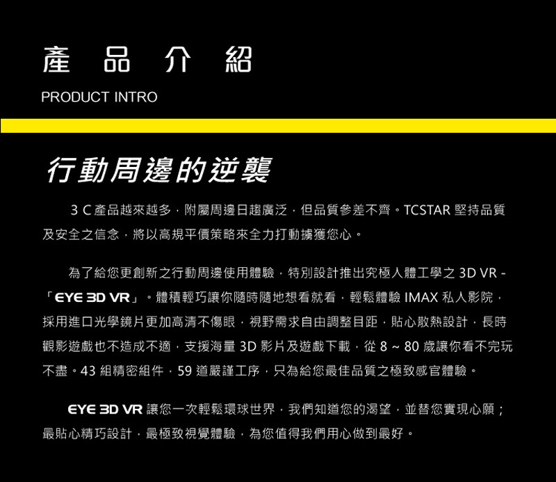 TCSTAR 3D立體虛擬實境VR眼鏡 EYE3DVR