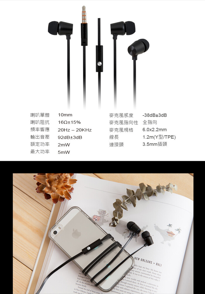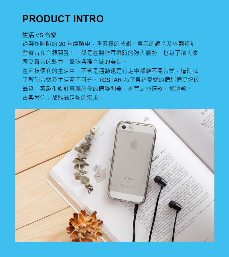 TCSTAR 有線入耳式耳機麥克風-黑 TCE6080BK
