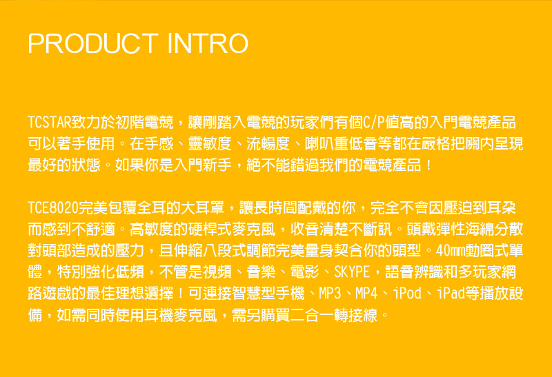 TCSTAR 電競頭戴式耳機麥克風TCE8020
