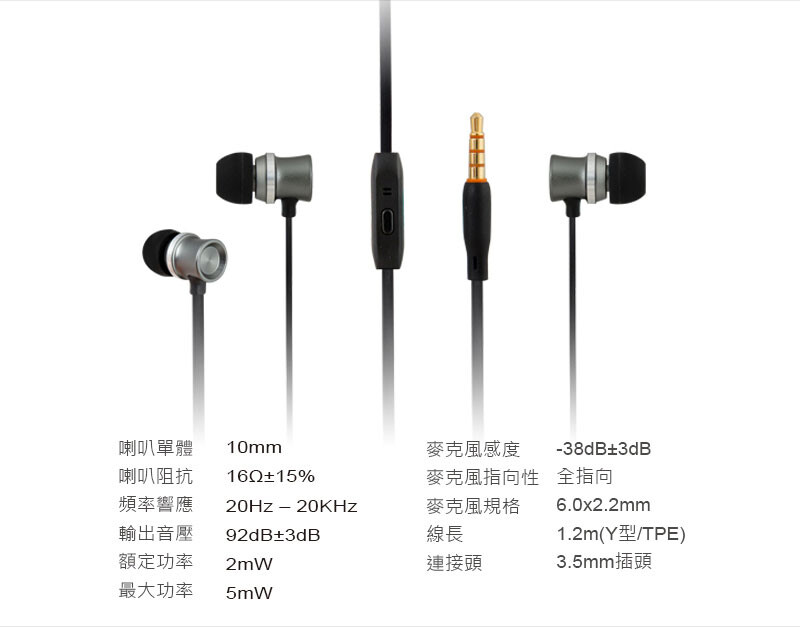 TCSTAR 有線入耳式耳機麥克風-灰 TCE6140GR