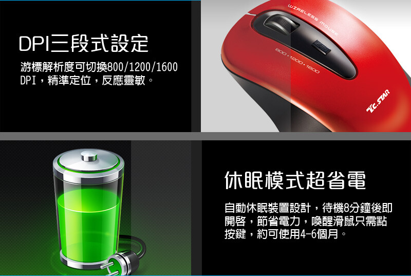 游標解析度可切換800/1200/1600 DPI,精準定位,反應靈敏