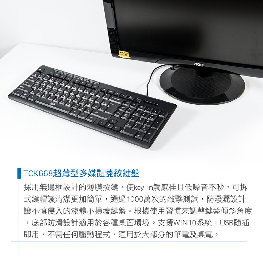 採用薄膜式按鍵,配合低按鍵設計