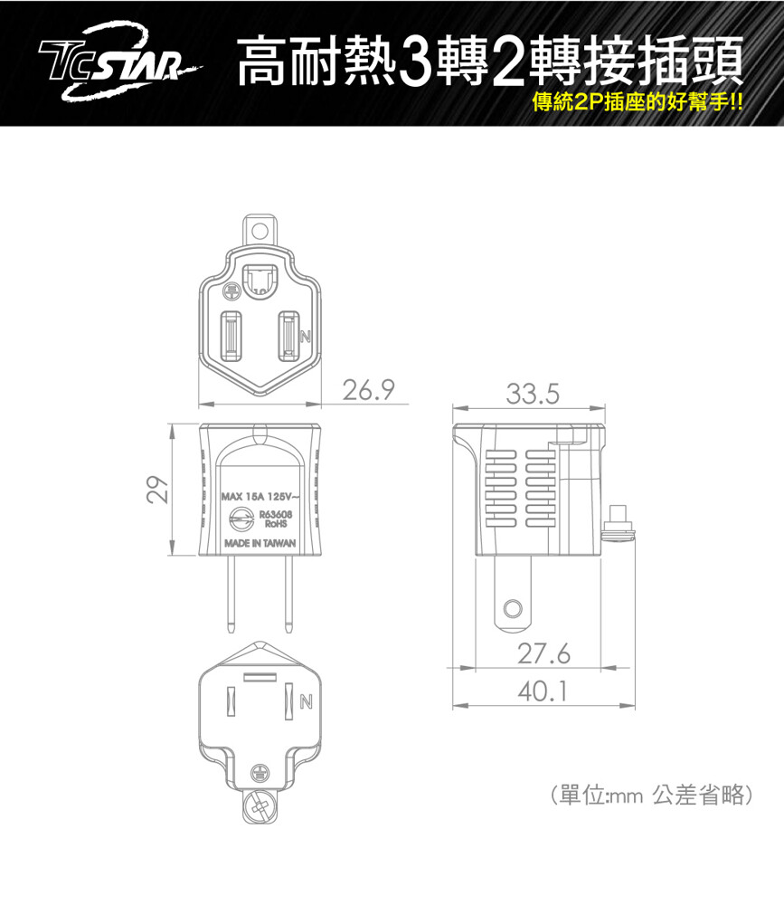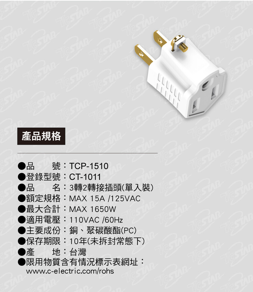 TCSTAR 3轉2轉接插頭(3入組) TCP-1510