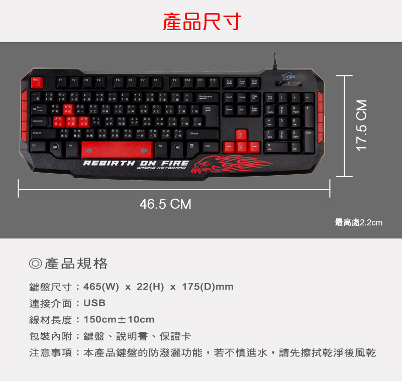 尺寸(mm) 465(W)x22(H)x175(D)mm
