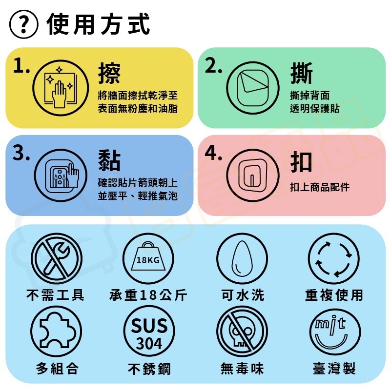 ⚠️如無痕重複背貼吸附上去後掉落或有空氣,很有可能是磁磚有肉眼看不到的縫隙(尤其是老舊磁磚),建議此時可換位置貼,或搭配專用輔助貼(非無痕膠)即可~