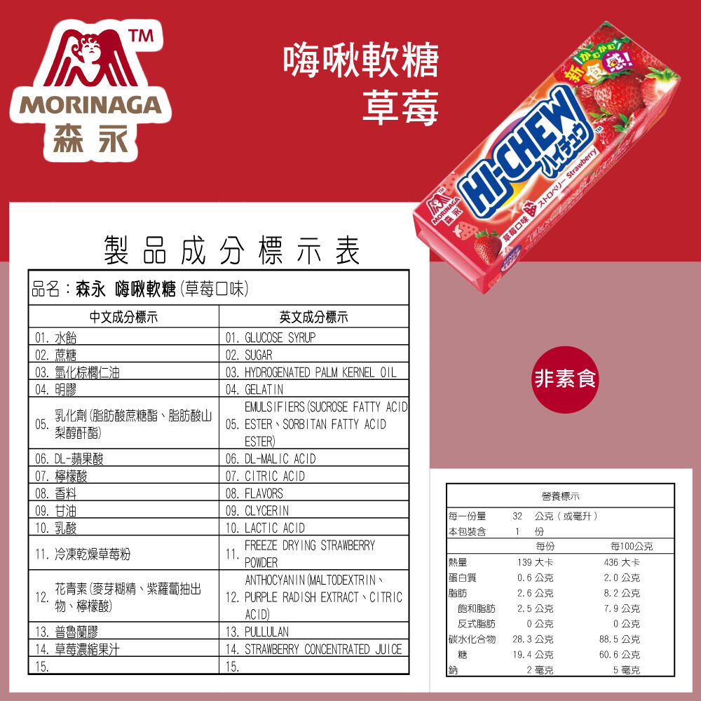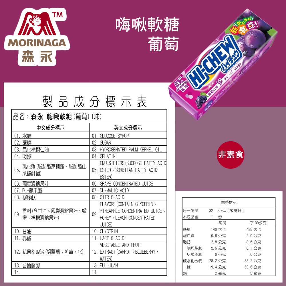 ★品名:森永嗨啾軟糖 (草莓/葡萄/水蜜桃/乳酸飲料)