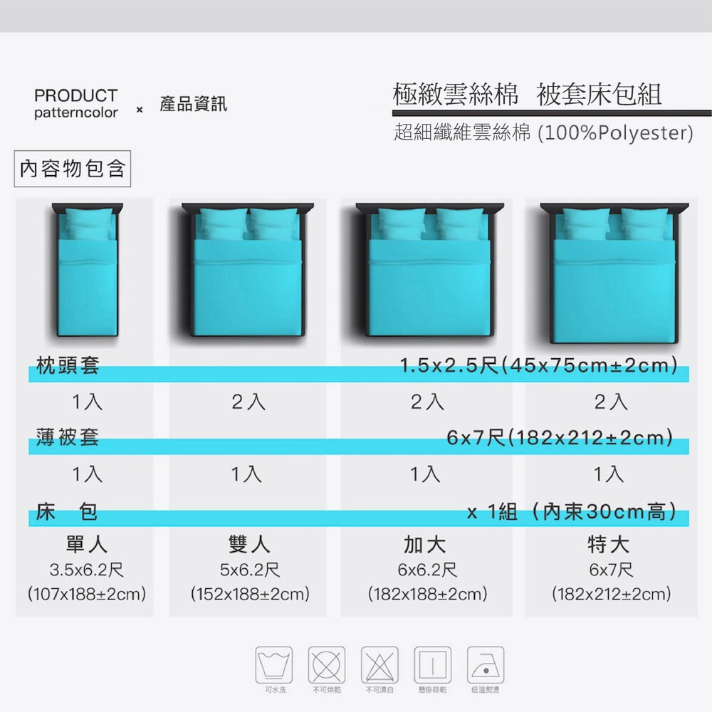 👉雙人床包+枕套2入+雙人6x7薄被套: