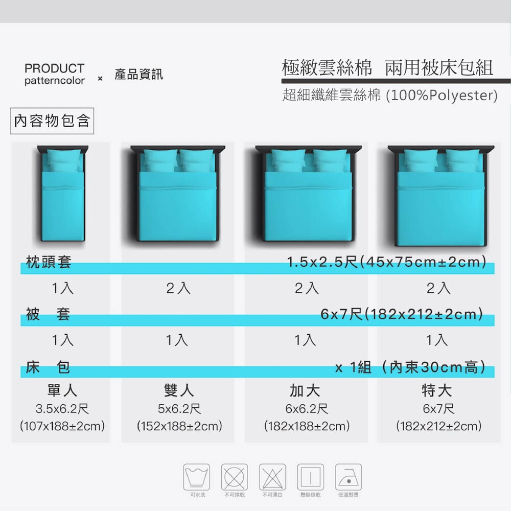 👉單人床包+枕套1入+雙人6x7兩用被套: