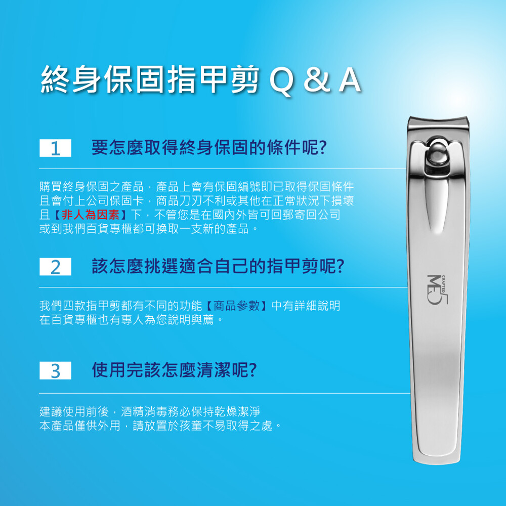 為專業修剪打造的理想工具!【ME5 獨步全球終身保固指甲剪】採用耐用鋼材製成,鋒利剪切提供完美修整。獨特的設計讓您能夠輕鬆應對各種修剪角度,操作靈活方便。堅固的設計保證使用過程中的安全,避免意外發生。人體工學握柄帶來舒適的使用體驗,每次修剪都輕鬆自然。這款指甲剪是您日常護理的必備良品!