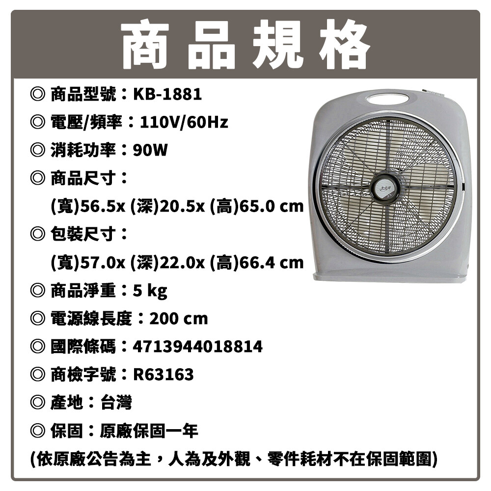 友情牌 18吋手提箱扇.電風扇 KB-1881 ~台灣製造