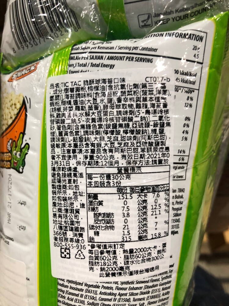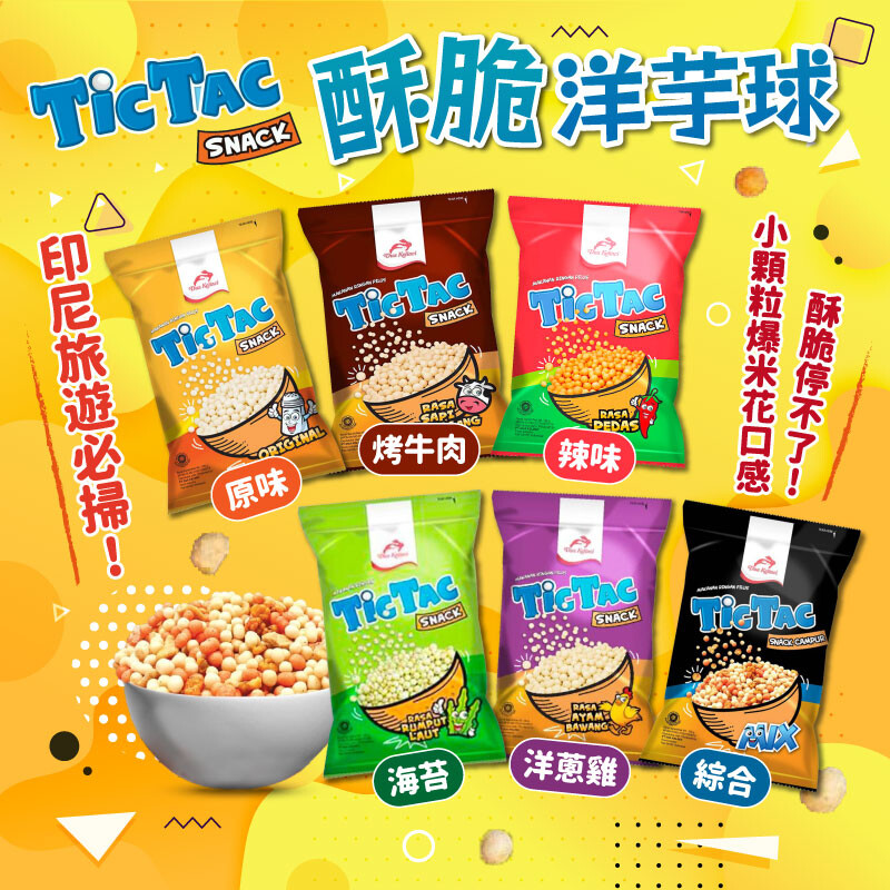 商品:【印尼】 Tic Tac SNACK 脆酥顆粒洋芋球 (原味、烤牛肉、辣味、海苔、洋蔥雞味、綜合)