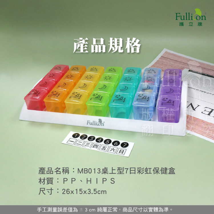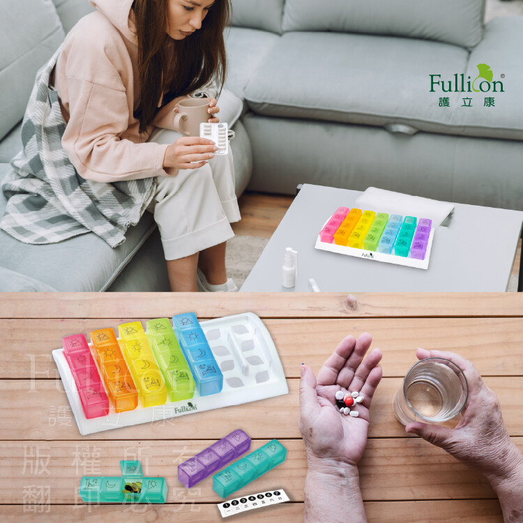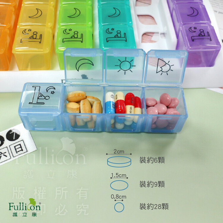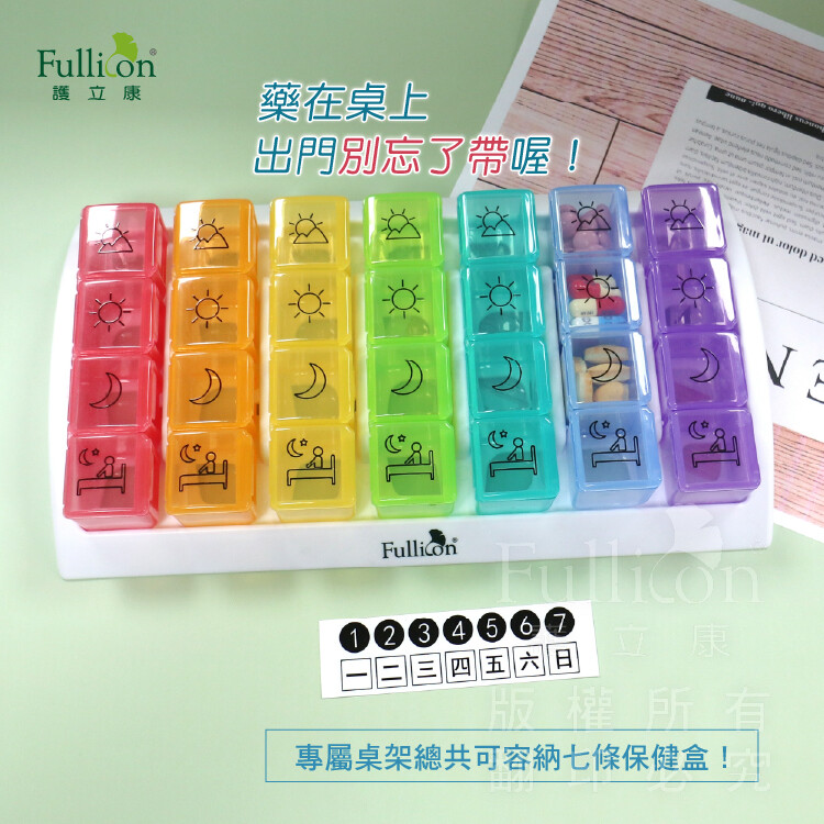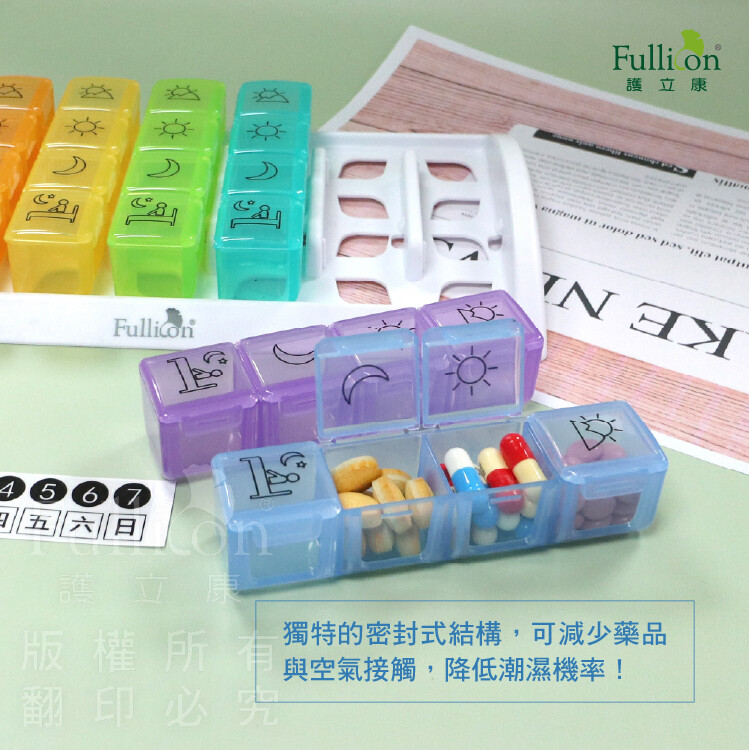 🟢七條四格彩色藥盒,方便一次收納一周保健品