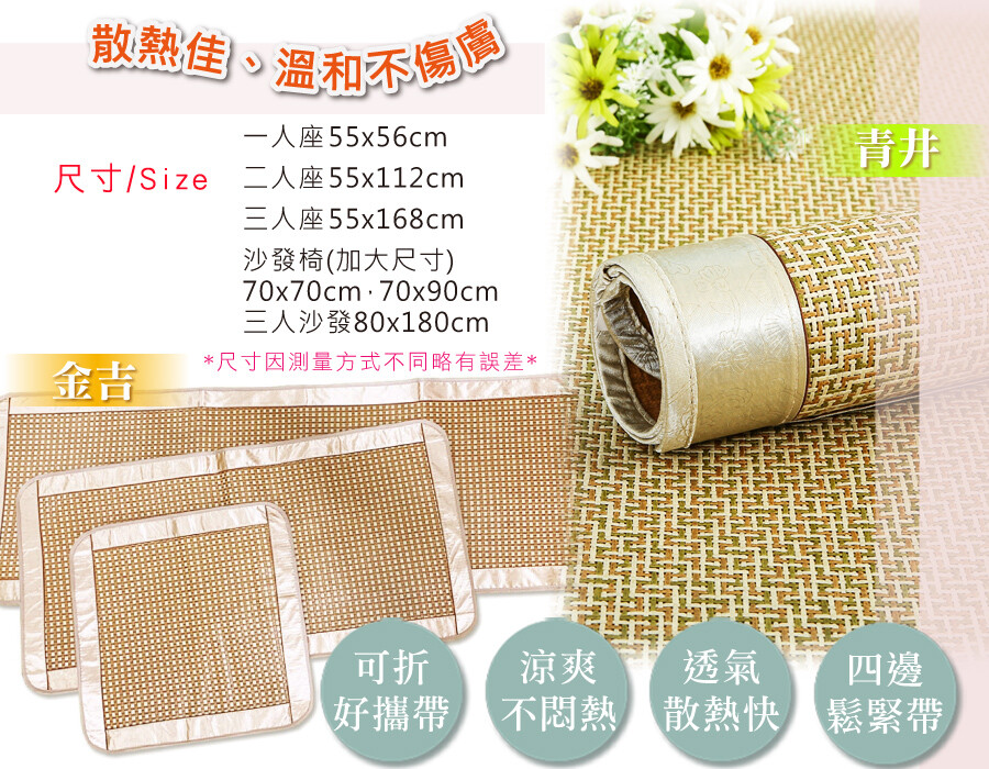 沙發椅專用紙纖涼蓆有兩種尺寸可以選擇: