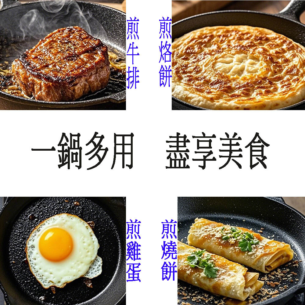 瓦斯爐電金爐或碳火皆可使用的本商品 (屬生鐵鑄鐵鍋,不適合烹煮酸性的食物,例如番茄、醋等)、適用瓦斯爐、烤箱、電磁爐等各式爐具 (僅微波爐不適用,鍋子高溫時請勿直接置放流理檯面與玻璃檯面以免破損),手柄易熱需配戴隔熱手套或鍋把套使用;想要效率料理輕鬆烹飪,您可試試此款煎烤盤。擁有導熱均勻長效持溫的特性,適合使用中、小火進行煎、炒或燒烤,且相當適合運用食物本身油脂乾煎,無多餘油脂原味又健康;第一次使用前,請先用溫熱肥皂水搭配海綿或細緻鬃毛刷 (勿用鋼刷) 徹底清潔後,用中小火徹底烘乾。準備養鍋時,於烘乾的鍋體內外先均勻塗抹植物油,烤箱預熱至 200 度C,再將鍋子倒扣置於烤架上 (下面請墊鋁箔紙接滴漏的油),熱烤 1 小時烤箱熄火,鍋子繼續留在烤箱中慢慢冷卻,冷卻後用廚房紙巾擦拭多餘的油脂,即完成初次養鍋作業;每次烹飪前,請先小火再轉中火預熱鍋子約 90 秒,即可加強不沾效果;每次清潔時,需待鍋體冷卻後再用海綿或細緻鬃毛刷 (勿用鋼刷,並且不建議使用清潔劑,以免破壞長期累積的黝黑發亮的不沾表層),搭配溫熱水清洗後,先用廚房紙巾擦拭表面水份,再用中小火徹底烘乾後,再用廚房紙巾沾點植物油均勻薄薄塗滿鍋子內層,完成保養再作收納。