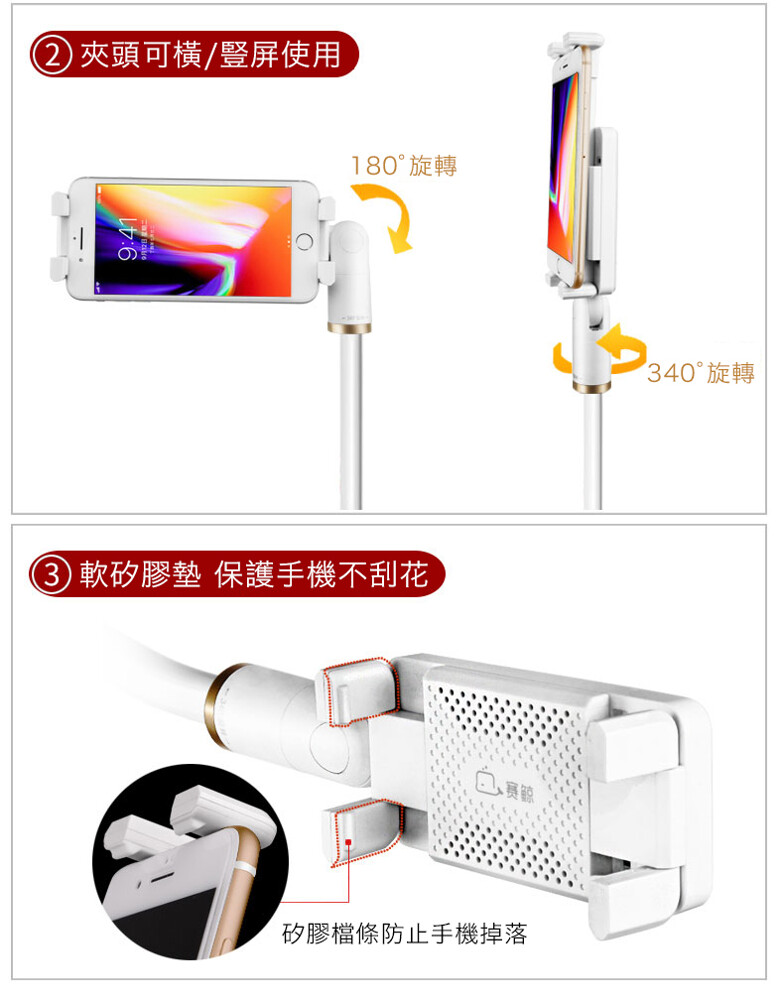 ♥夾頭可340°旋轉設計,輕鬆任性玩;