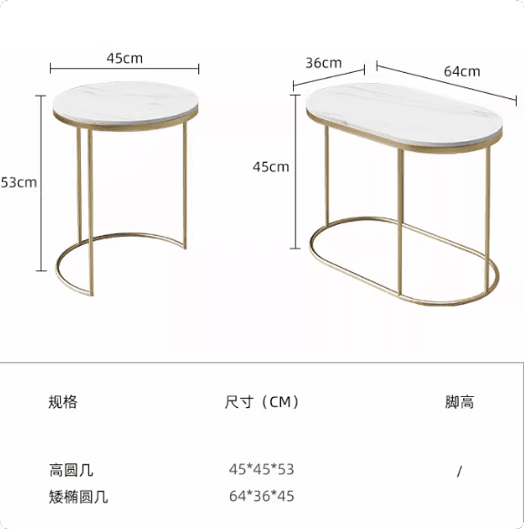 尺寸:高圓幾:長45*寬45*高53cm 矮橢圓幾:長63*寬36*高45cm