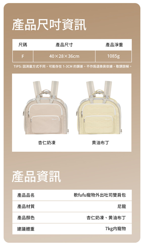 品名 : 山谷軟FuFu寵物外出吐司雙肩包