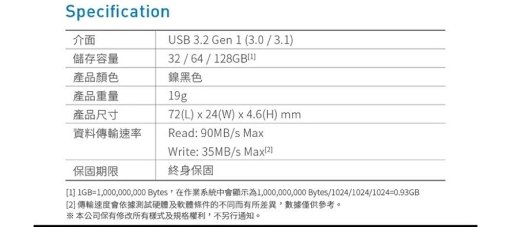 資料傳輸速率:Read:90 MB/s MAX