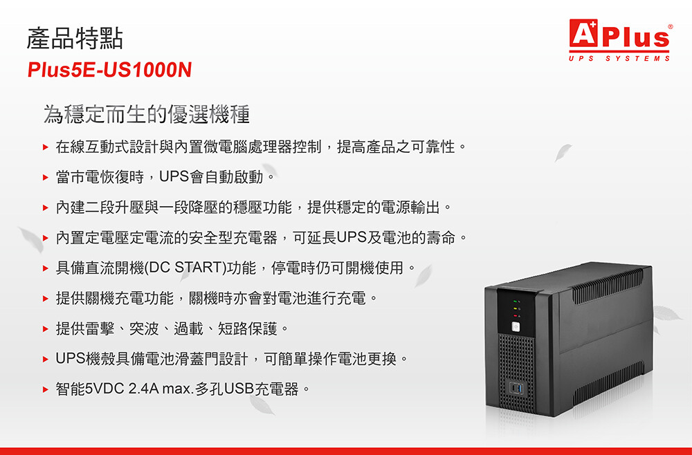 特優Aplus 在線互動式UPS Plus5E-US1000N(1000VA/600W)