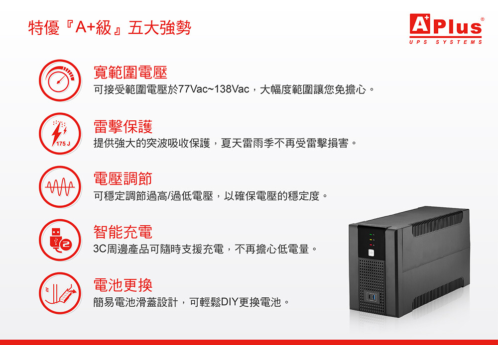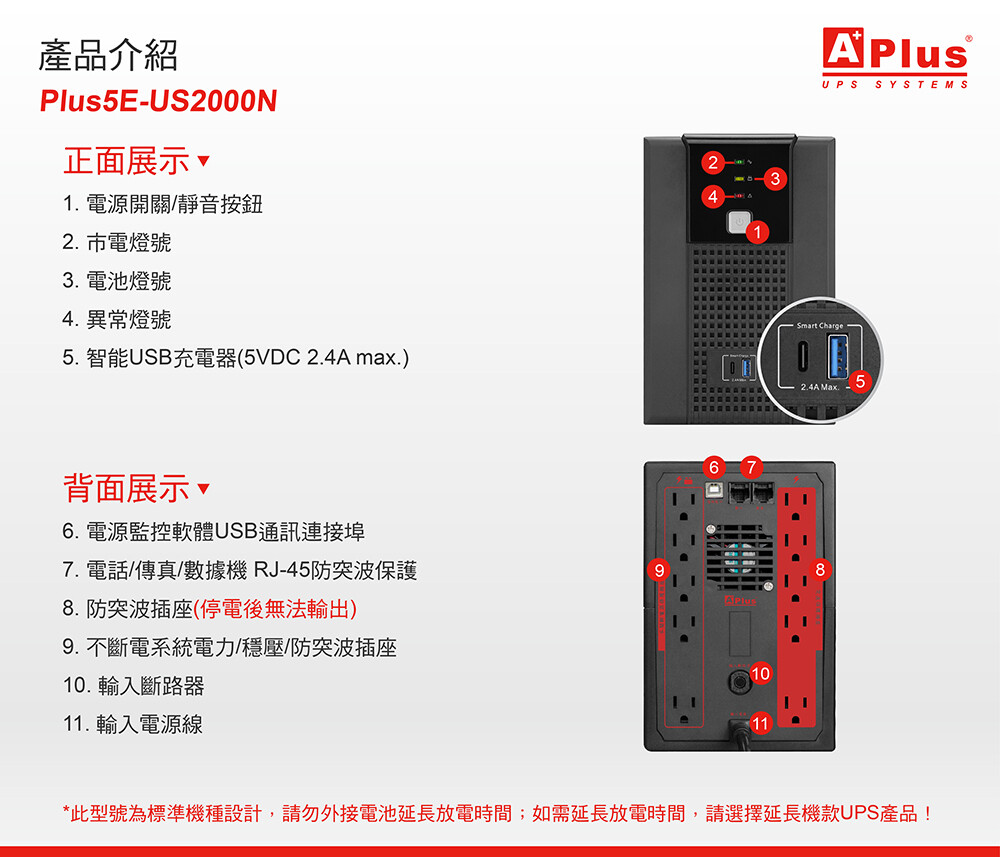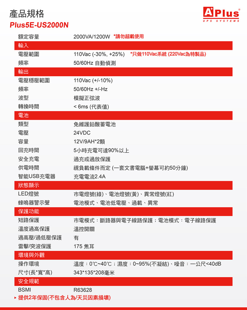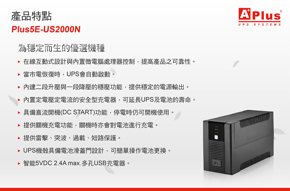 特優Aplus 在線互動式UPS Plus5E-US2000N(2000VA/1200W)
