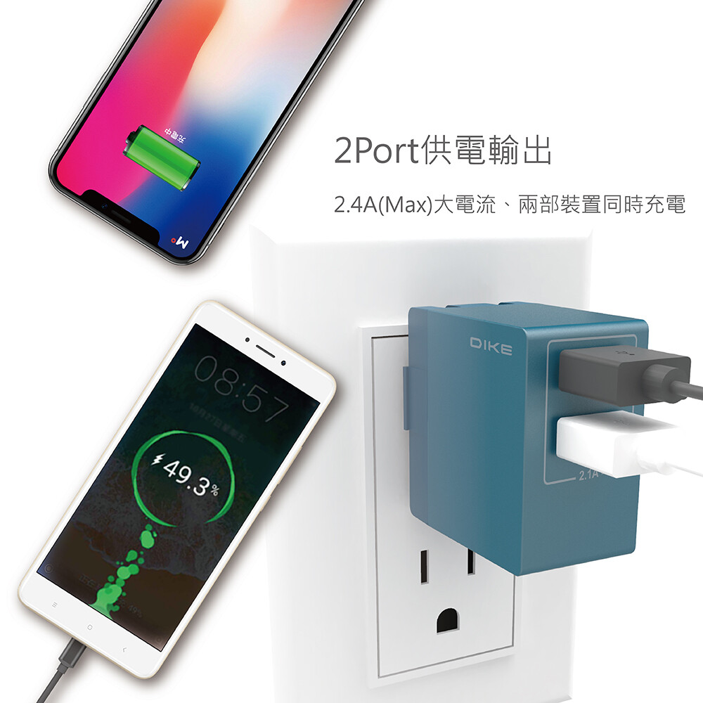 .USB Port1+Port2:DC 5V/2.4A(Max)"