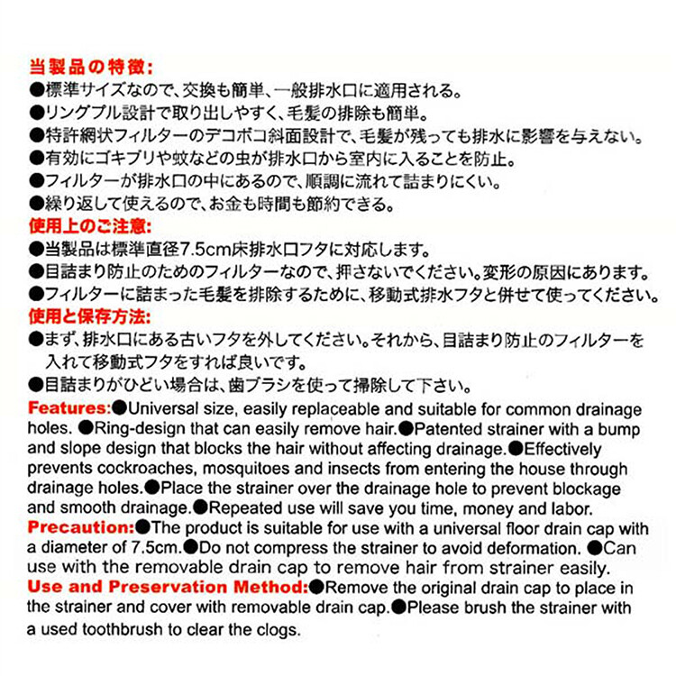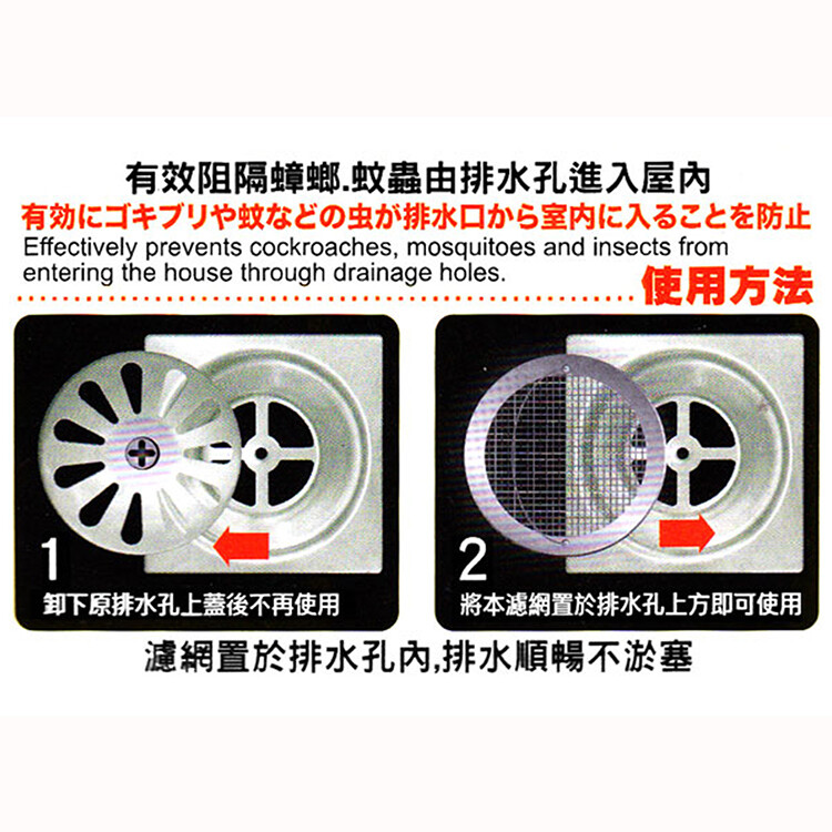 阻擋菜渣、毛髮、小飾品、雜物掉入排水口內 ,導致排水口阻塞,裝卸容易,適用排水口。