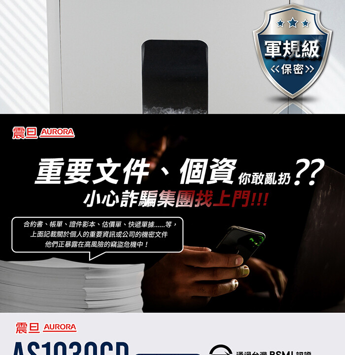 ※碎紙機商品於出廠前每台都會經過品檢測試,裁刀上會有潤滑油,以及裁刀及集紙桶內皆會有少許測試用紙屑,皆為全新品之正常現象。