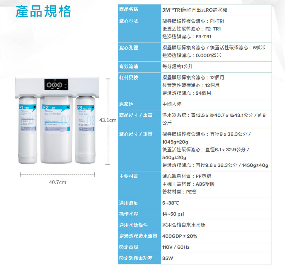 3M F3-TR1 RO膜濾心 (約二年換)