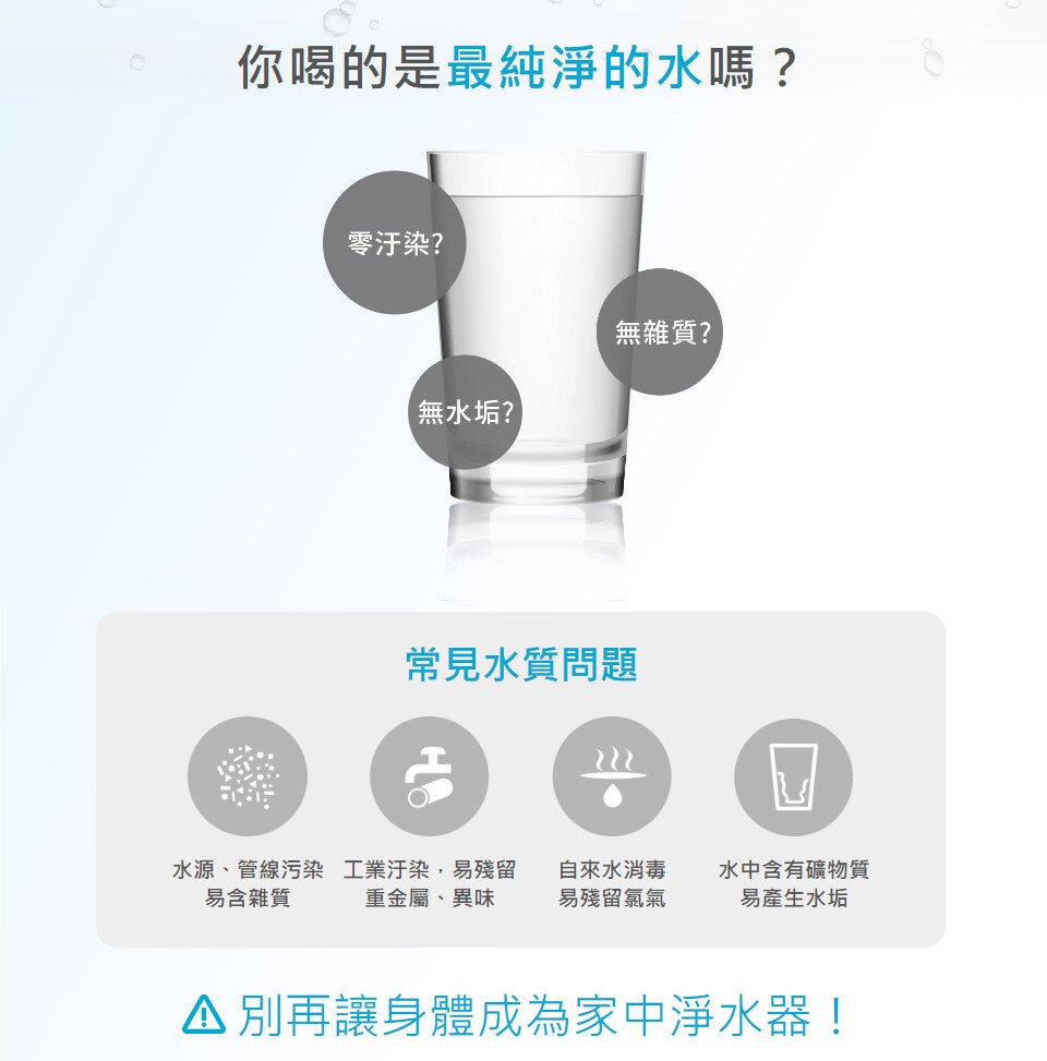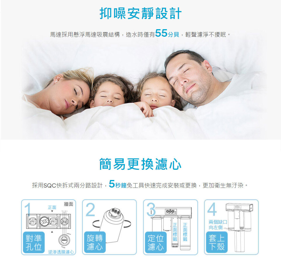 - 搭載三道顯示面板,可知道何時需更換濾心